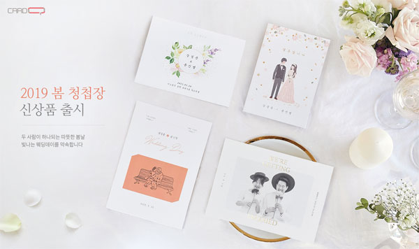 청첩장 전문 업체 카드큐가 2019 봄 웨딩 시즌을 맞이하여 신상품 청첩장을 출시했다. 이와 함께 카드큐는 에코백 증정, 청첩장 할인 쿠폰 받기 등 신상품 출시를 기념하여 다양한 이벤트를 준비했다고 5일 밝혔다.