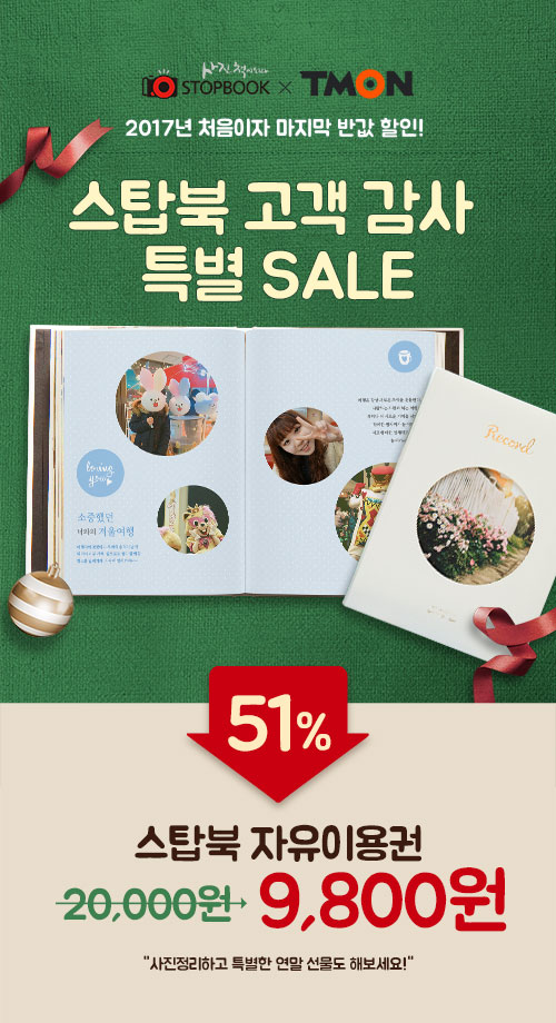 스탑북 관계자는 "이번 할인 판매는 스탑북이 감사의 마음을 담아 진행하는 연말 고객 감사 이벤트"라면서 "이번 행사를 기회로 많은 분들이 한 해를 돌아보고 나와 소중한 사람에게 특별한 연말 선물도 하는 뜻깊은 시간을 갖길 바란다"고 말했다.
