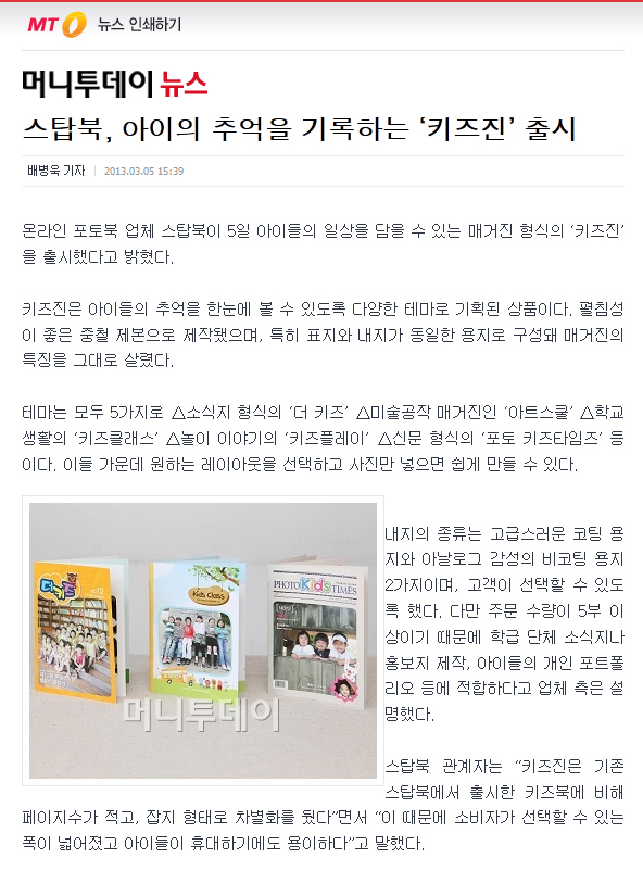 스탑북, 아이의 추억을 기록하는 '키즈진' 출시