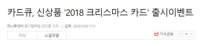 카드 제작 전문 업체 카드큐가 '2018년 크리스마스 카드' 신상품을 출시했다고 9일 밝혔다.
