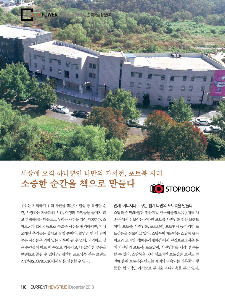 KOREA POWER 대한민국의 힘! 한국학술정보(주)소중한 순간을 책으로 만들다, 스탑북