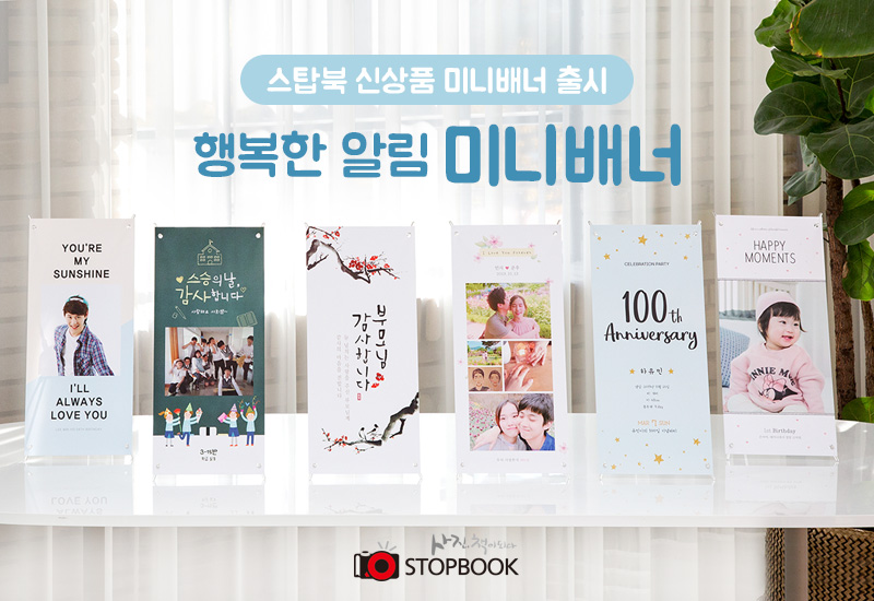 한편 스탑북은 신제품 출시를 기념해 ‘미니배너로 행복 나누기’ 이벤트를 진행한다. 미니배너에 담고 싶은 소중한 사람을 선택하고 활용 방법을 댓글로 적으면 추첨을 통해 미니배너 제작권과 스타벅스 아메리카노를 경품으로 증정한다. 이벤트는 오는 28일까지 진행된다.